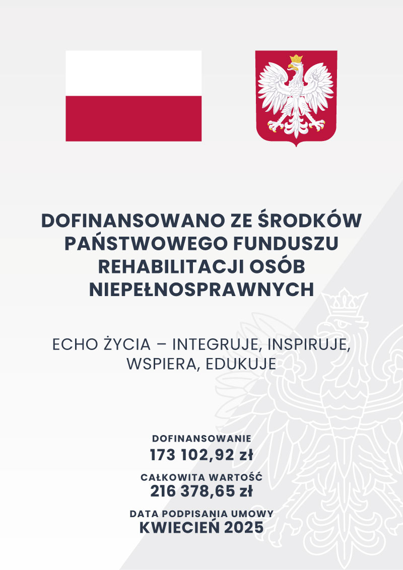 z niepełnosprawnościami. Celem szczegółowym jest redagowanie i wydawanie czasopisma ECHO ŻYCIA z podtytułem „inspiruje, wspiera, edukuje” adresowanego do ogółu społeczeństwa celem przybliżenia problemów środowiska osób z niepełnosprawnościami.